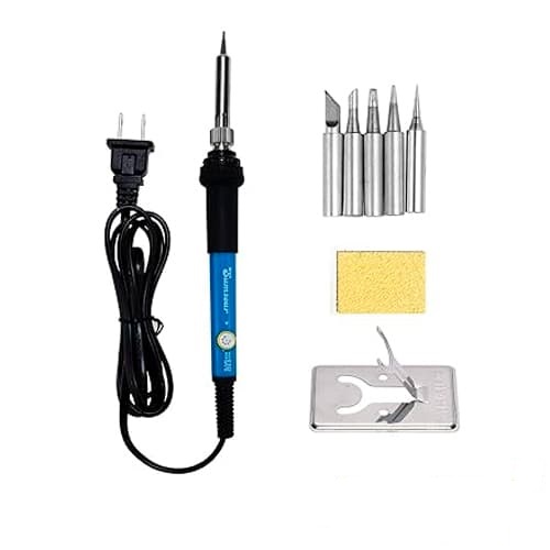 KIT SOLDADOR DE ESTANIO CON ACCESORIOS (CAUTIN DE PUNTAS INTERCAMBIABLES-BASE-DESOLDADOR POR VACIO-TERMOCANTRIBLES-PLAQUETA DE DESARROLLO)